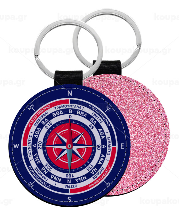 Wind compass, Μπρελόκ Δερματίνη, στρογγυλό ΡΟΖ (5cm)