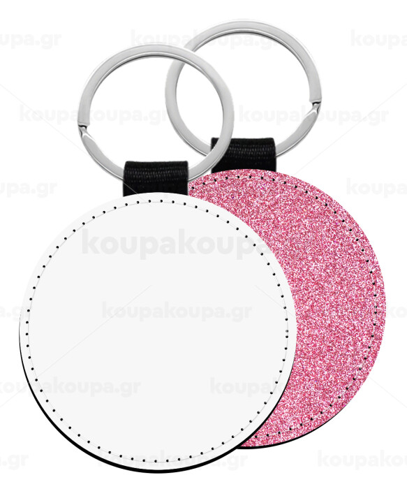 Leatherette keychain with glitter on one side and high resistance leatherette on the other. Safety ring for the keys.