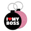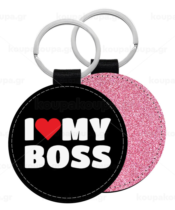 I LOVE MY BOSS, Μπρελόκ Δερματίνη, στρογγυλό ΡΟΖ (5cm)