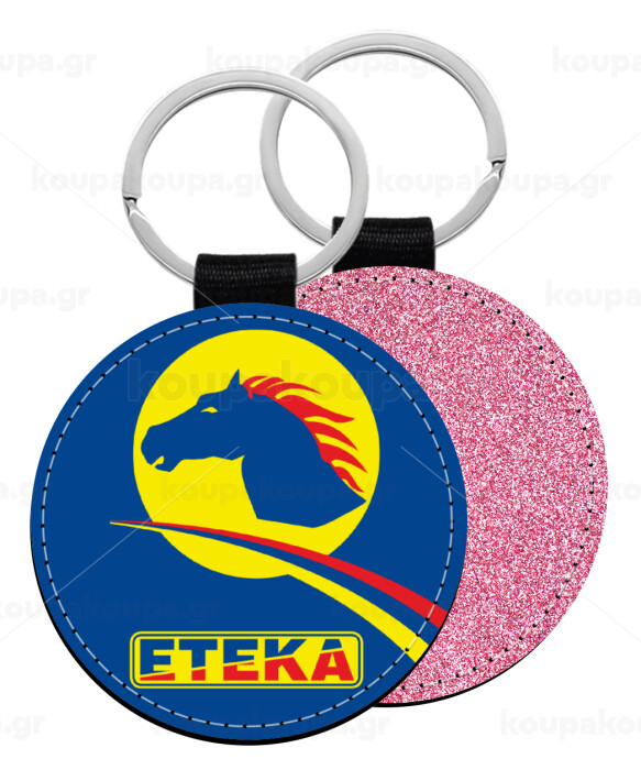 Πρατήριο καυσίμων ETEKA, Μπρελόκ Δερματίνη, στρογγυλό ΡΟΖ (5cm)