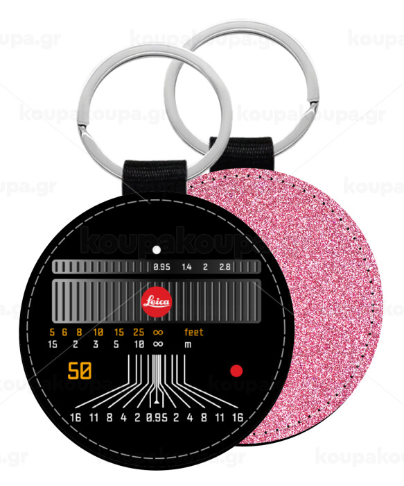 Leica Lens, Μπρελόκ Δερματίνη, στρογγυλό ΡΟΖ (5cm)