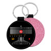 Leatherette keychain with glitter on one side and high resistance leatherette on the other. Safety ring for the keys.