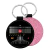 Leatherette keychain with glitter on one side and high resistance leatherette on the other. Safety ring for the keys.