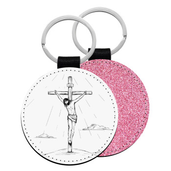 Jesus Christ , Μπρελόκ Δερματίνη, στρογγυλό ΡΟΖ (5cm)