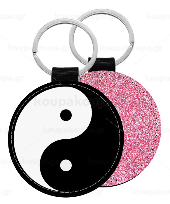 Yin Yang, Μπρελόκ Δερματίνη, στρογγυλό ΡΟΖ (5cm)