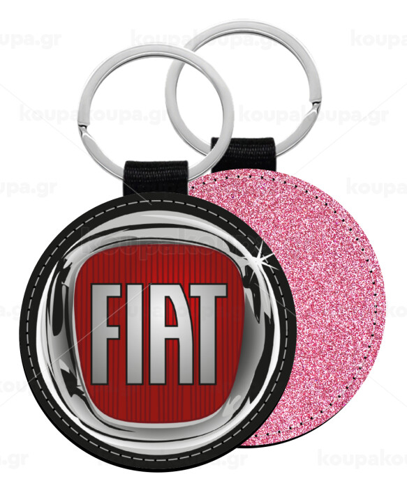 FIAT, Μπρελόκ Δερματίνη, στρογγυλό ΡΟΖ (5cm)