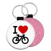 I love Bike, Μπρελόκ Δερματίνη, στρογγυλό ΡΟΖ (5cm)