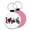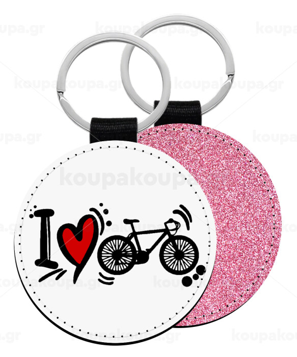 I love my bike, Μπρελόκ Δερματίνη, στρογγυλό ΡΟΖ (5cm)