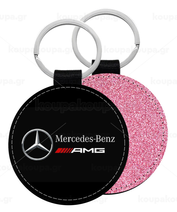 Mercedes AMG, Μπρελόκ Δερματίνη, στρογγυλό ΡΟΖ (5cm)