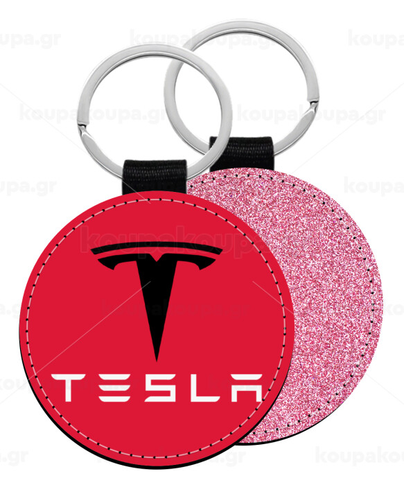 Tesla motors, Μπρελόκ Δερματίνη, στρογγυλό ΡΟΖ (5cm)