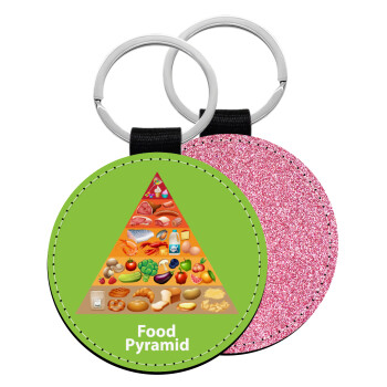 Food pyramid chart, Μπρελόκ Δερματίνη, στρογγυλό ΡΟΖ (5cm)