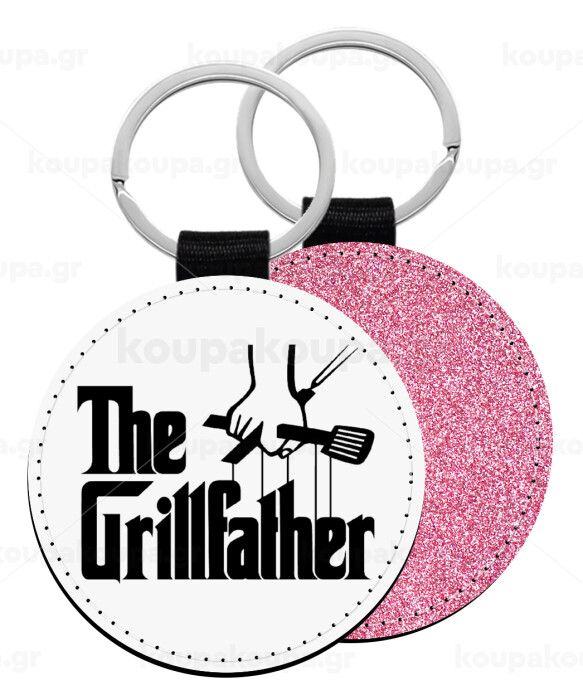 The Grill Father, Μπρελόκ Δερματίνη, στρογγυλό ΡΟΖ (5cm)