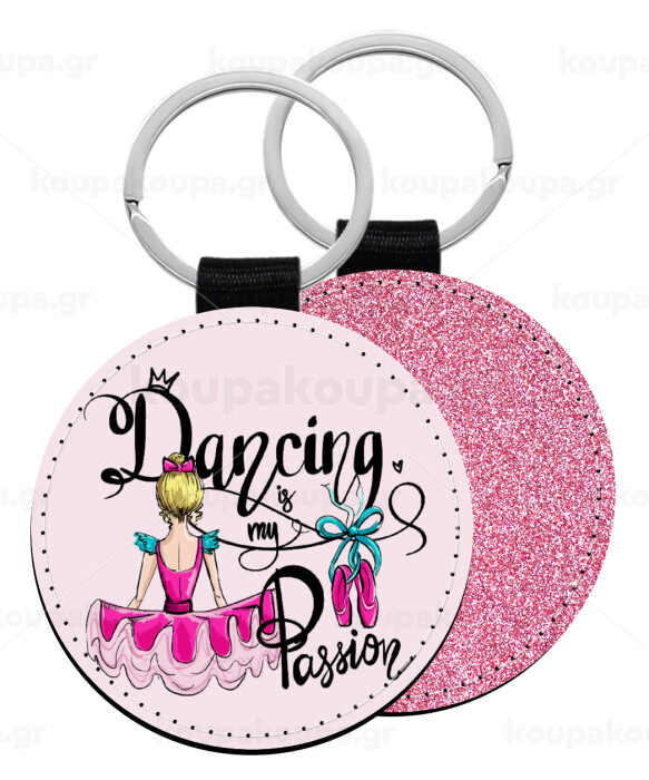 Dancing is my Passion, Μπρελόκ Δερματίνη, στρογγυλό ΡΟΖ (5cm)