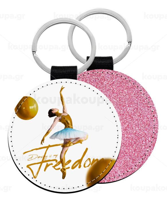 Gold Dancer, Μπρελόκ Δερματίνη, στρογγυλό ΡΟΖ (5cm)