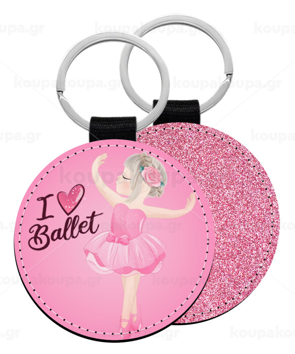 I Love Ballet, Μπρελόκ Δερματίνη, στρογγυλό ΡΟΖ (5cm)