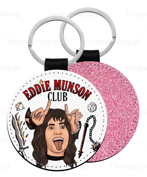 Eddie Munson, Hellfire CLub, Stranger Things, Μπρελόκ Δερματίνη, στρογγυλό ΡΟΖ (5cm)