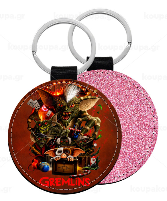 Gremlins, Μπρελόκ Δερματίνη, στρογγυλό ΡΟΖ (5cm)