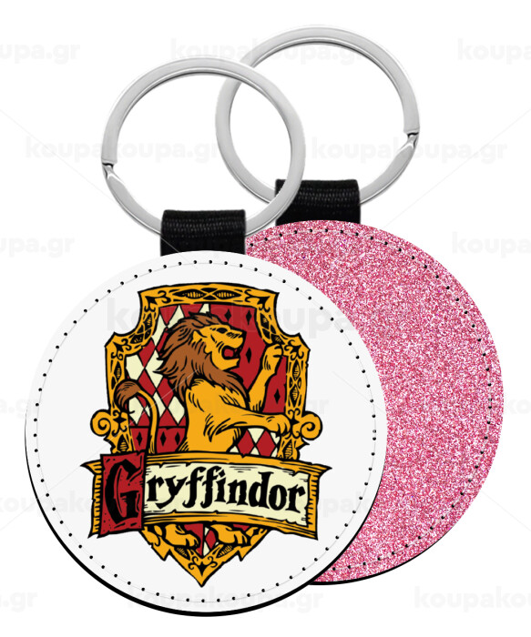 Gryffindor, Harry potter, Μπρελόκ Δερματίνη, στρογγυλό ΡΟΖ (5cm)
