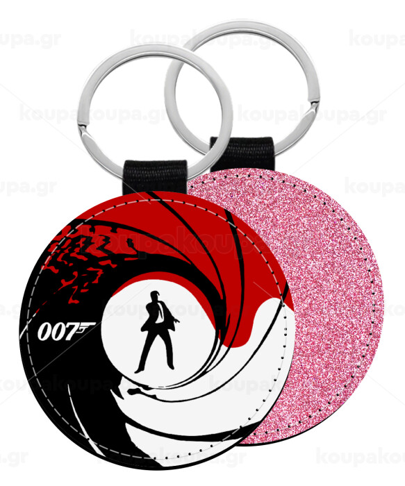 James Bond 007, Μπρελόκ Δερματίνη, στρογγυλό ΡΟΖ (5cm)