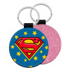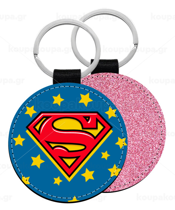 Superman Blue, Μπρελόκ Δερματίνη, στρογγυλό ΡΟΖ (5cm)