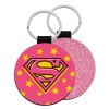 Superman Pink, Μπρελόκ Δερματίνη, στρογγυλό ΡΟΖ (5cm)