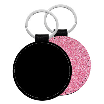 Leatherette keychain with glitter on one side and high resistance leatherette on the other. Safety ring for the keys.