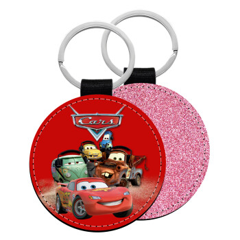 Αυτοκίνητα, Μπρελόκ Δερματίνη, στρογγυλό ΡΟΖ (5cm)