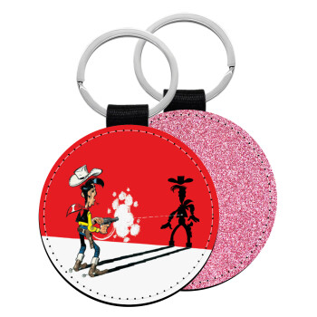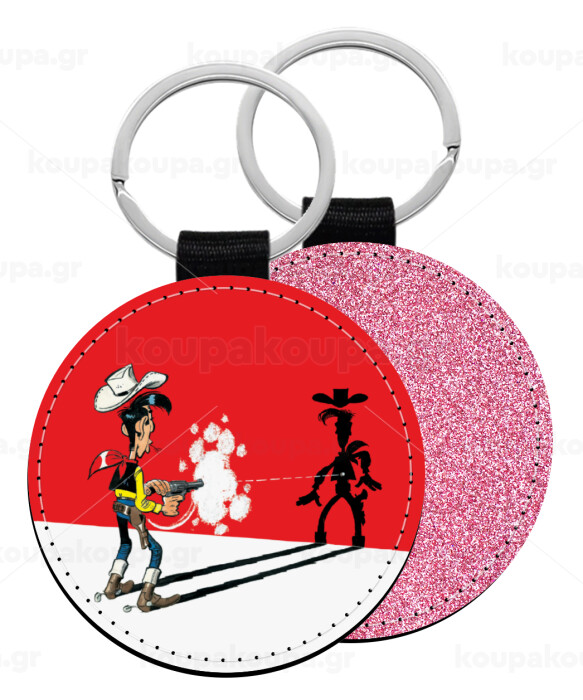 Lucky Luke shadows, Μπρελόκ Δερματίνη, στρογγυλό ΡΟΖ (5cm)
