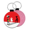 Leatherette keychain with glitter on one side and high resistance leatherette on the other. Safety ring for the keys.