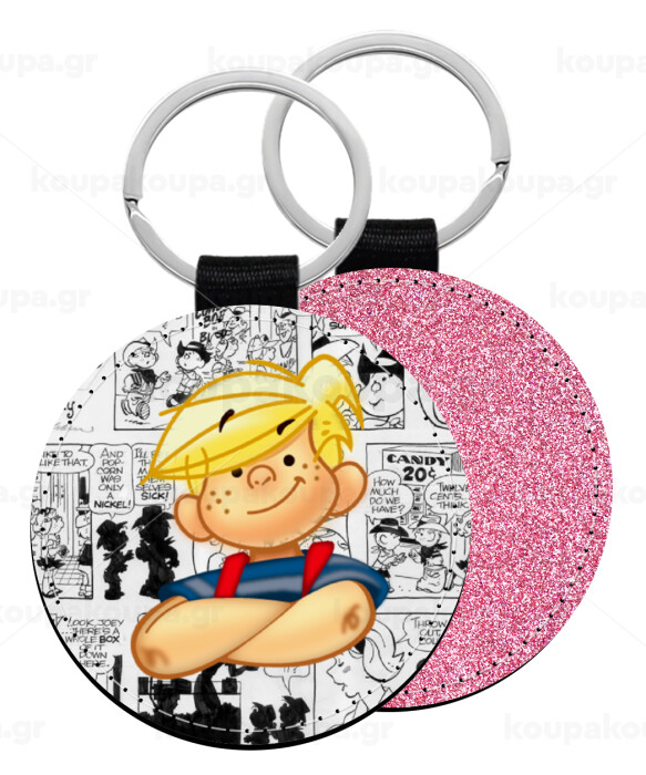 Dennis the Menace, Μπρελόκ Δερματίνη, στρογγυλό ΡΟΖ (5cm)