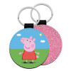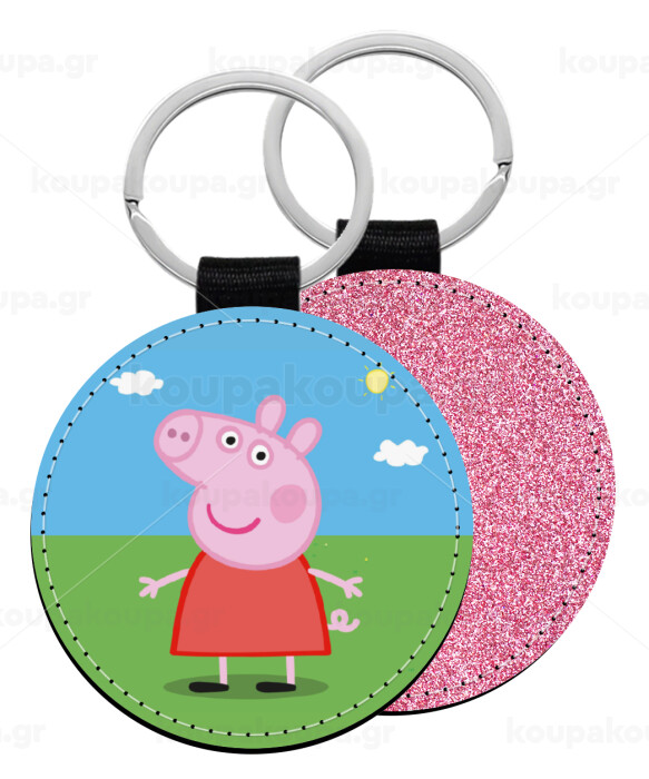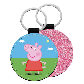 Πέππα το γουρουνάκι, Μπρελόκ Δερματίνη, στρογγυλό ΡΟΖ (5cm)