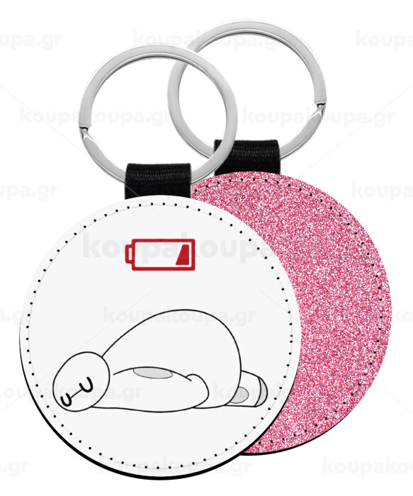 Baymax battery low, Μπρελόκ Δερματίνη, στρογγυλό ΡΟΖ (5cm)