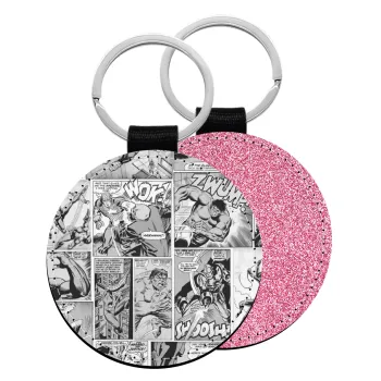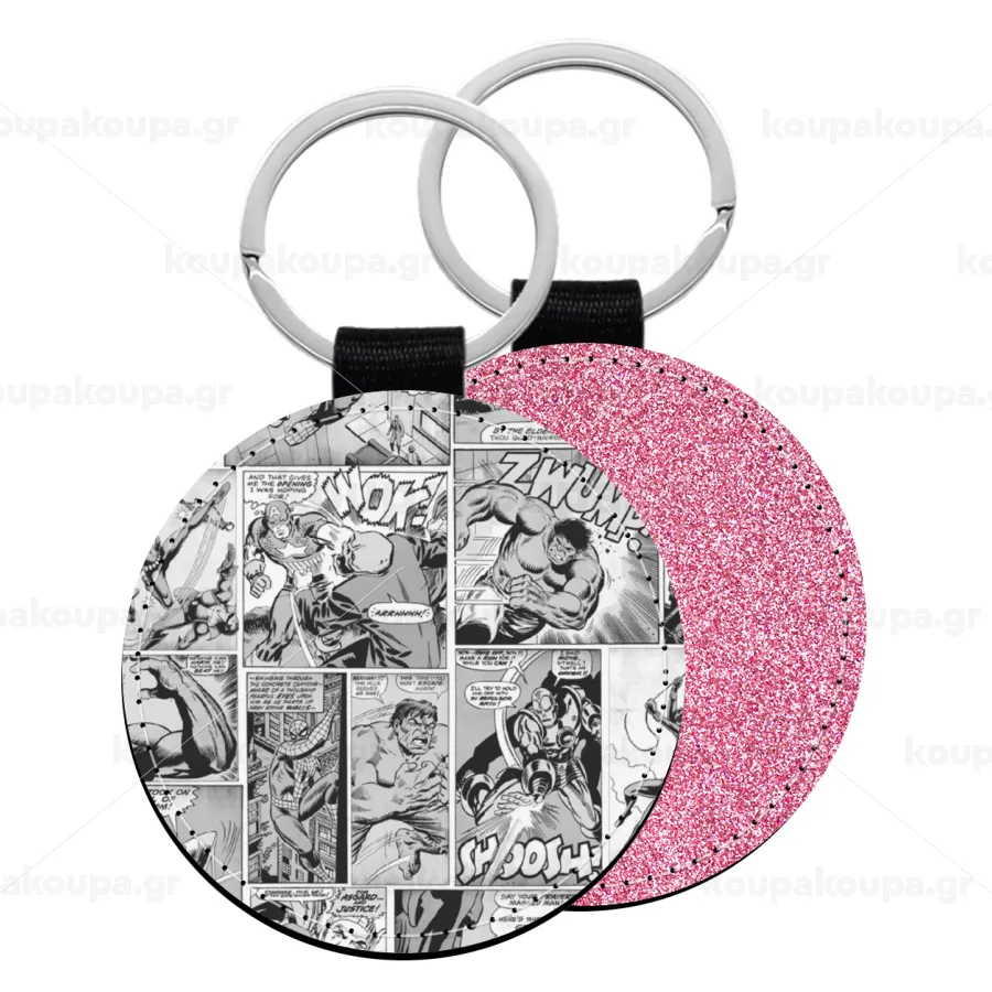 Classic comic Limited B/W, Μπρελόκ Δερματίνη, στρογγυλό ΡΟΖ (5cm)