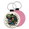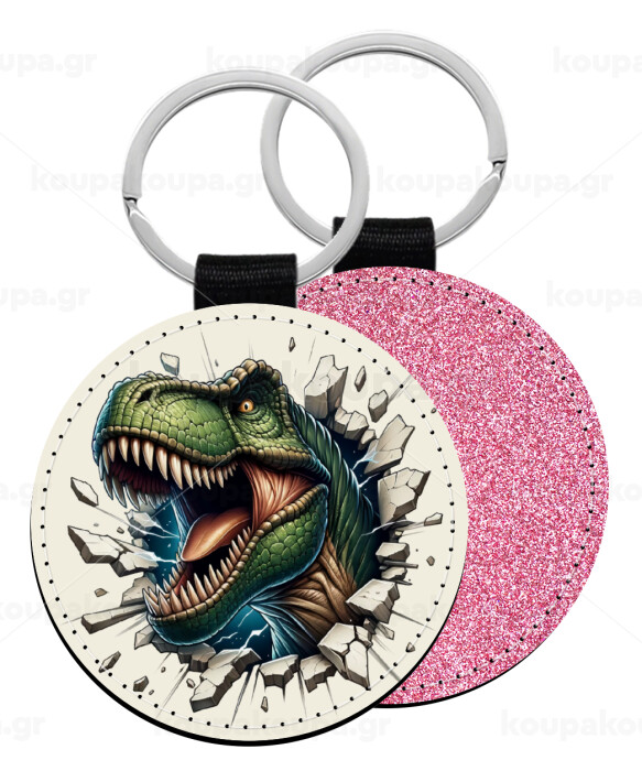 Dinosaur break wall, Μπρελόκ Δερματίνη, στρογγυλό ΡΟΖ (5cm)