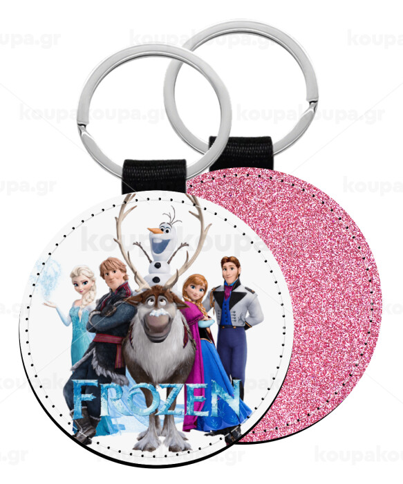 Frozen, Μπρελόκ Δερματίνη, στρογγυλό ΡΟΖ (5cm)