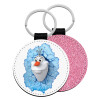 Frozen Olaf, Μπρελόκ Δερματίνη, στρογγυλό ΡΟΖ (5cm)