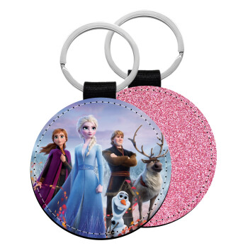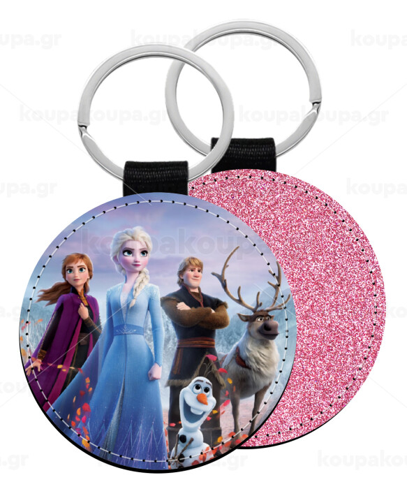 Frozen, Μπρελόκ Δερματίνη, στρογγυλό ΡΟΖ (5cm)