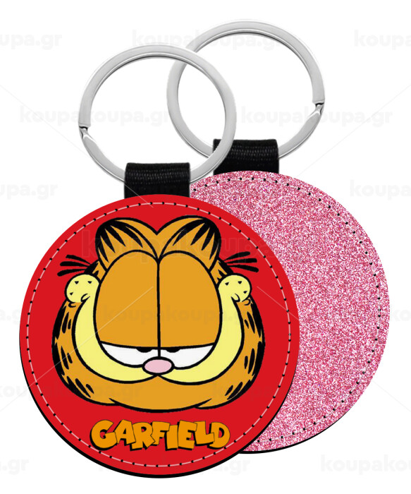 Garfield, Μπρελόκ Δερματίνη, στρογγυλό ΡΟΖ (5cm)