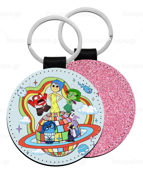 Inside Out, Μπρελόκ Δερματίνη, στρογγυλό ΡΟΖ (5cm)