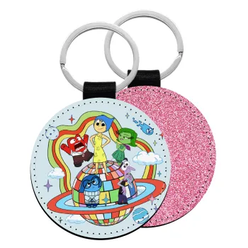 Inside Out, Μπρελόκ Δερματίνη, στρογγυλό ΡΟΖ (5cm)