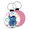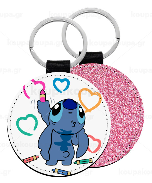 Lilo & Stitch painting, Μπρελόκ Δερματίνη, στρογγυλό ΡΟΖ (5cm)