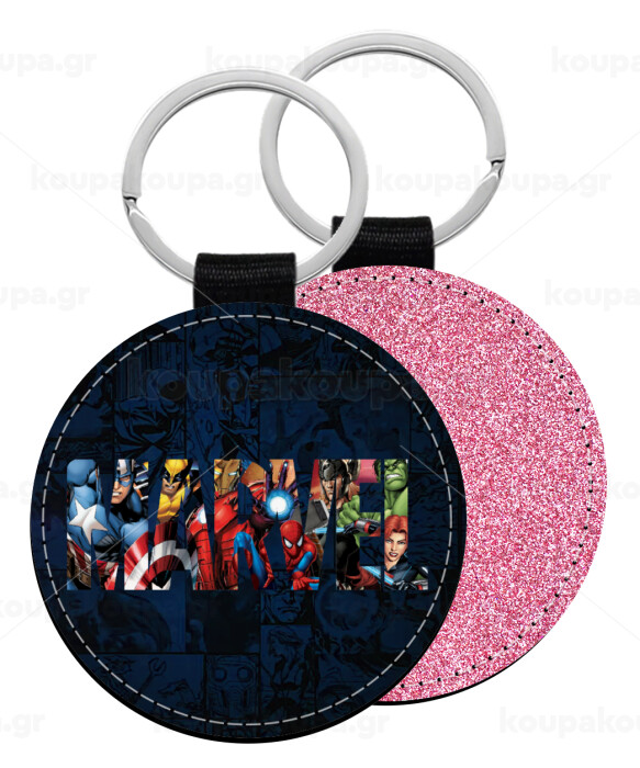 MARVEL characters, Μπρελόκ Δερματίνη, στρογγυλό ΡΟΖ (5cm)