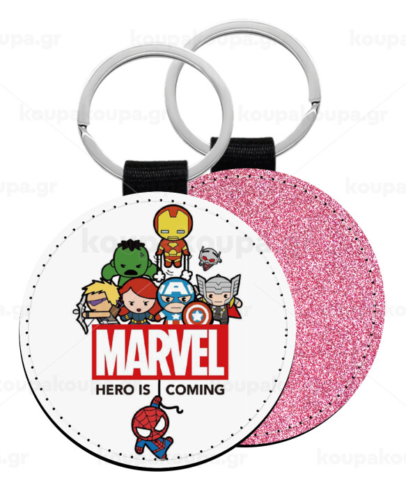 MARVEL, Μπρελόκ Δερματίνη, στρογγυλό ΡΟΖ (5cm)
