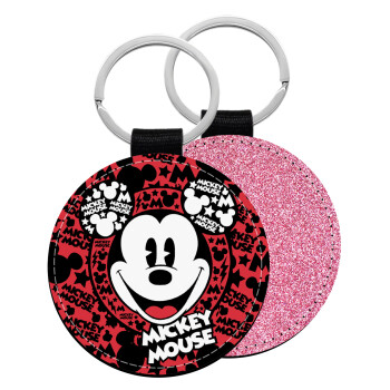 Mickey Mouse, Μπρελόκ Δερματίνη, στρογγυλό ΡΟΖ (5cm)