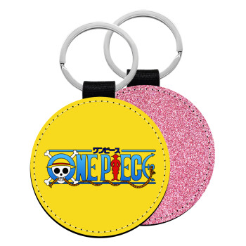 Onepiece logo, Μπρελόκ Δερματίνη, στρογγυλό ΡΟΖ (5cm)