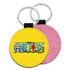 Leatherette keychain with glitter on one side and high resistance leatherette on the other. Safety ring for the keys.