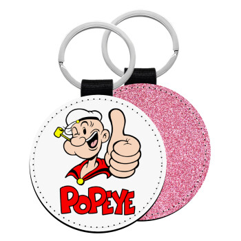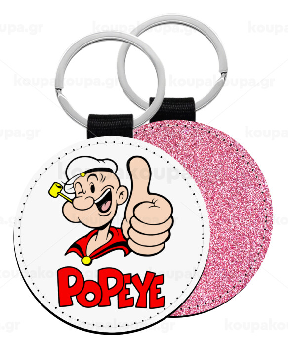 Popeye the sailor man, Μπρελόκ Δερματίνη, στρογγυλό ΡΟΖ (5cm)