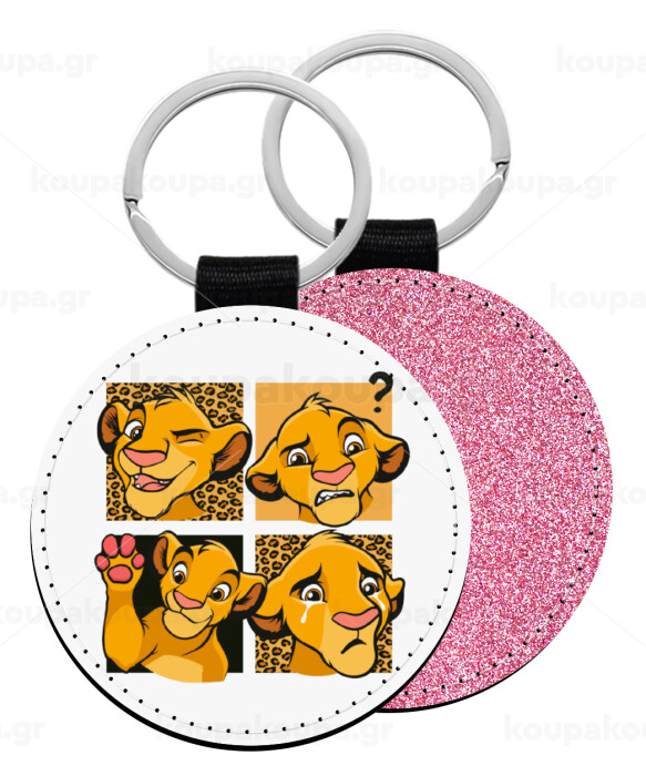 Simba, lion king, Μπρελόκ Δερματίνη, στρογγυλό ΡΟΖ (5cm)