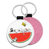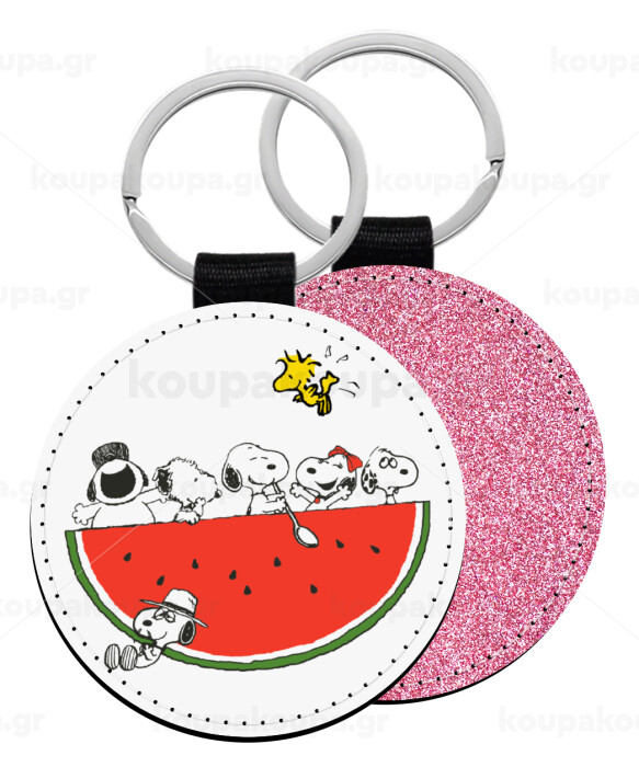 Snoopy summer, Μπρελόκ Δερματίνη, στρογγυλό ΡΟΖ (5cm)
