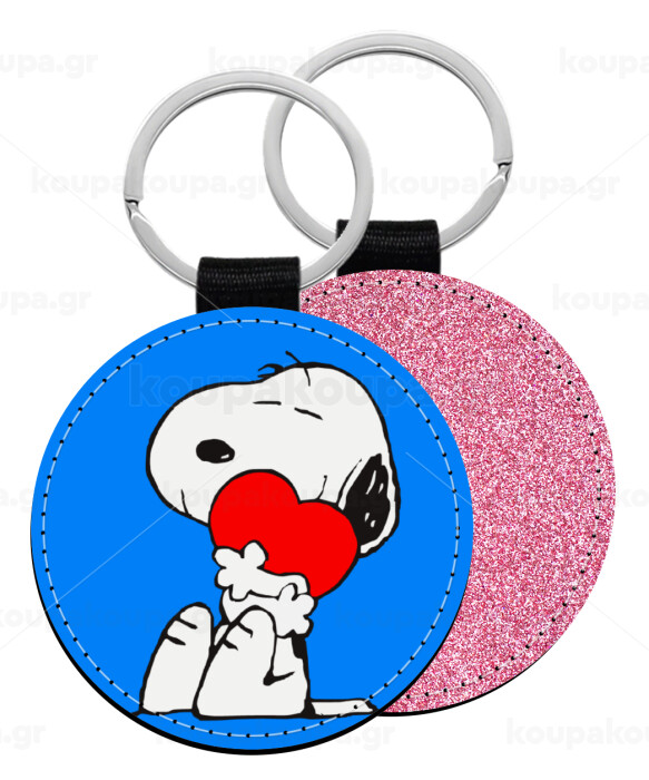 Snoopy, Μπρελόκ Δερματίνη, στρογγυλό ΡΟΖ (5cm)